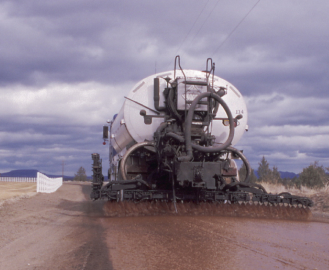 In contrast, Earthbind® is a safe, long-lasting and economical solution for dirt roads, gravel roads and any unpaved road surface. Earthbind® is used on mining roads, agricultural roads and many unpaved county and forest service roads. Earthbind® is considered to be non-carcinogenic. Earthbind is applied at ambient temperature with no heating is required. When the recommended application and handling procedures are followed, Earthbind® is considered to be safe to humans and the environment. Once applied and with adequate time to cure, Earthbind® is resistant to water and does not re-emulsify when it rains.